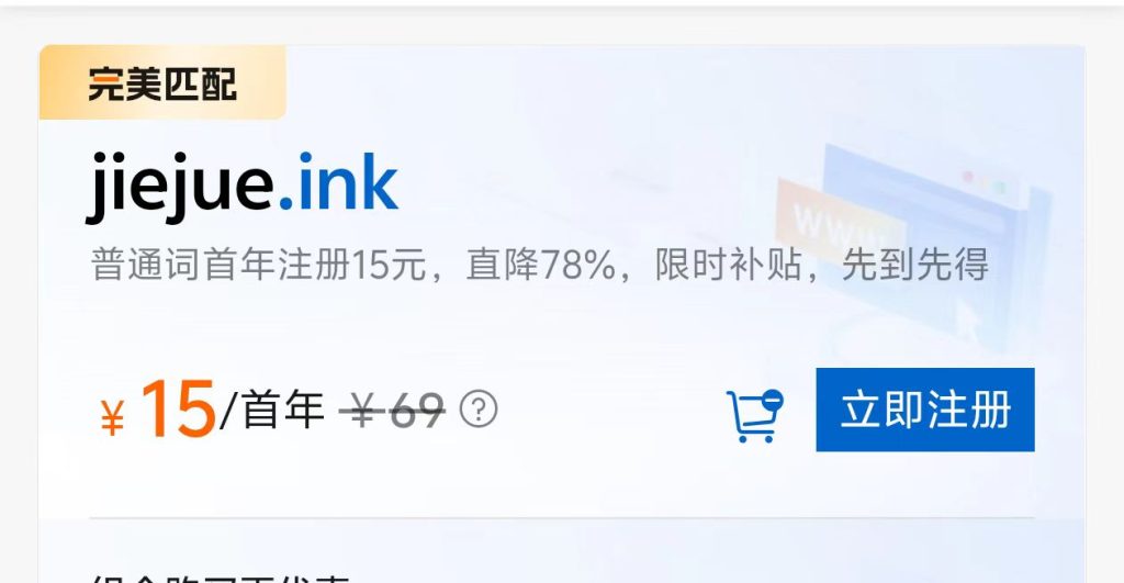 9月20日09:16 选购网站域名,成功购买jiejue.ink域名