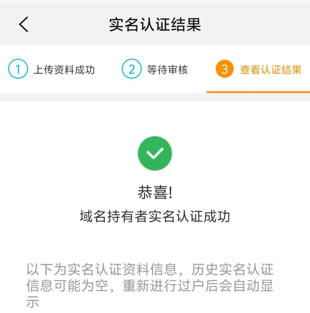 9月20日10:31 域名持有者实名认证成功